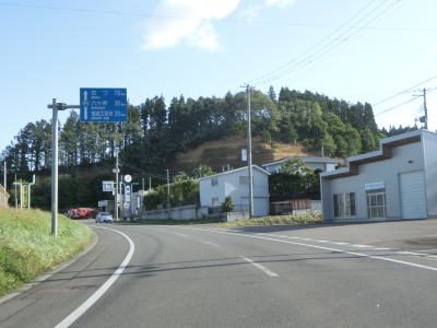 | 水田の中の2車線道路を走っていると町境を越えて東北町に入る。小刻みなカーブを曲がった後にやや急な勾配を下がり、急勾配を上った先に青森r173との交差点がある。R394は交差点を一時停止した後に右折して六ヶ所方面に進む。急勾配の直後の交差点のため見通しが悪い。 | ||