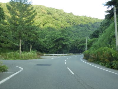 | 緩やかな勾配を下り視界が開けた所でR456との交差点を通過する。交差点の手前にチェーン着脱場が設置されているが、他では余り見かけない未舗装の砂利敷である。R456が重複しても道路状況に変化はなく走りやすい2車線道路が続く。約800m先の沢田前交差点でR456が江刺方面に分岐して短い重複区間が終わる。 | ||