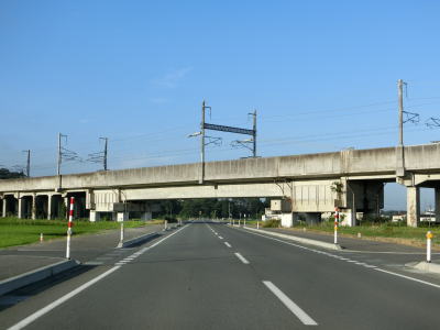 | 沢田前交差点を通過した直後は平坦だが、すぐに緩やかな上り勾配が始まる。家屋が点在する中を走っており、道路状況としては走りやすいと言える。盆地部に出ると前方に東北新幹線の高架橋が見えてくる。 | ||