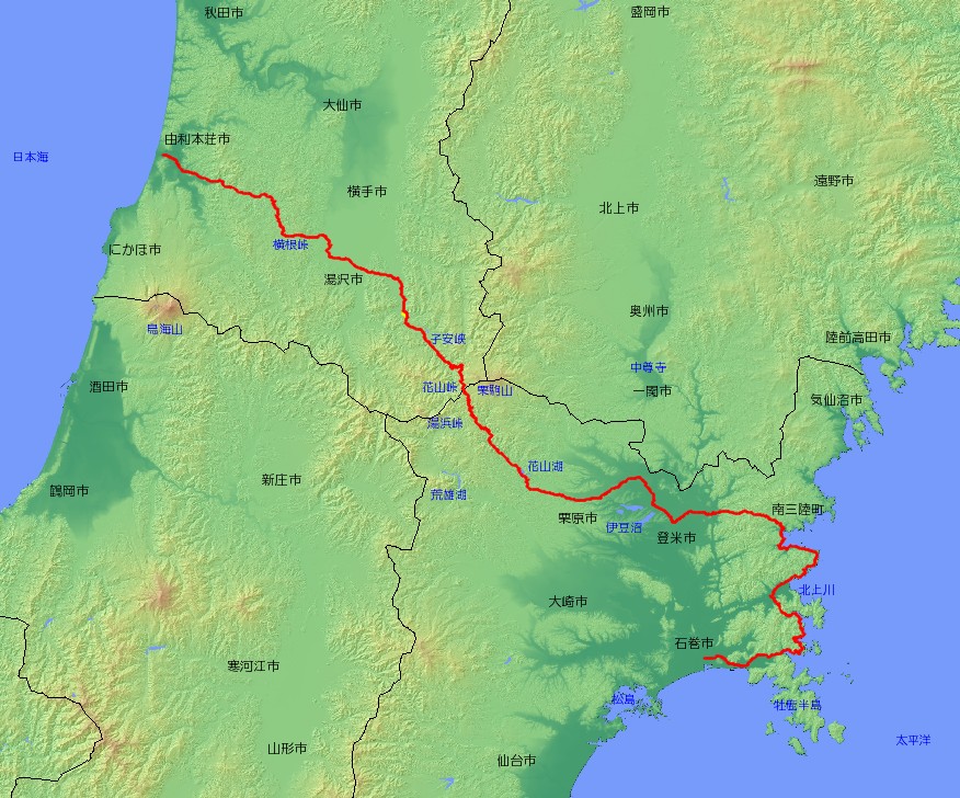 | 主な経由地 | 宮城県石巻市〜女川町〜南三陸町〜登米市〜栗原市〜 〜秋田県湯沢市〜東由利町〜由利本荘市 |