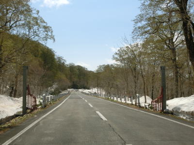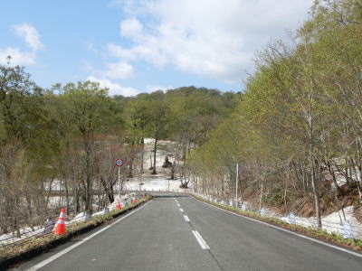 | 168.花山峠ゲート | 169.宮城県側にも残雪あり | 170.倒れた支柱は雪の重みが原因か? |