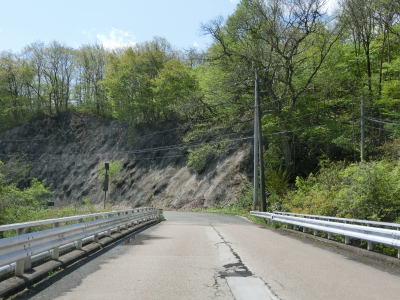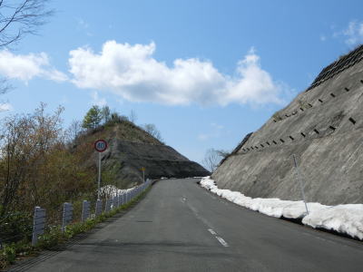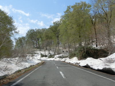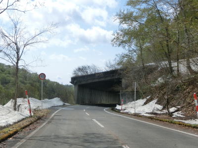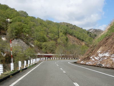 | 171.湯浜洞門 | 172.残雪(?)のため北向き車線が塞がれている場所があった | 173.前方に見えるのは熊沢橋 |