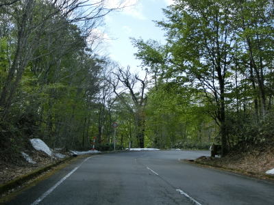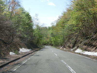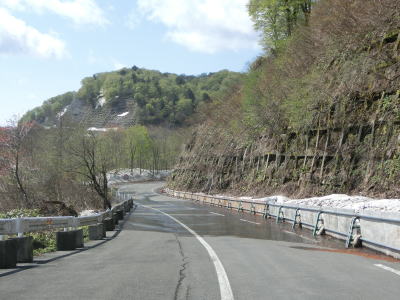 | 174.融雪水が路上の流れている | 175.宮城県側も2車線道路 | 176.ロックシェッドのあったヘアピンカーブはバイパスが開通 |