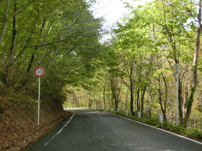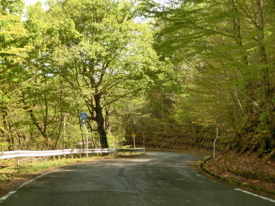 | 削沢沿いの区間にもセンターラインがなくなるが、道幅は2.0車線程度あるので乗用車で走る分にはさほど困らない。数台の対向車とすれ違ったのちに連続ヘアピンカーブ区間に入る。1.4kmの間に10ヶ所近いヘアピンカーブがある。 | ||