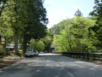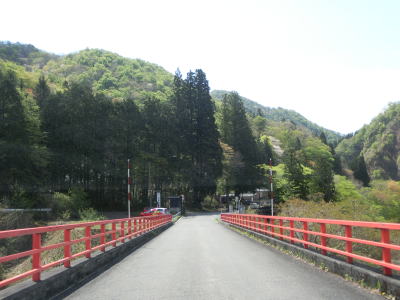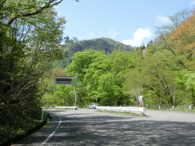 | 花山峠を越えた直後に閉鎖用のゲートが設置されているが、峠を挟まない区間で通行止が生じた際に閉じられるのだろう。道路状況も秋田県側と大きな差はなく、センターライン付きの2車線道路を下って行く。道路の左側に砂利の広いスペースがあるが、湯浜温泉の駐車場である。温泉そのものは母沢にあり、歩いて向かう事になる。 | ||