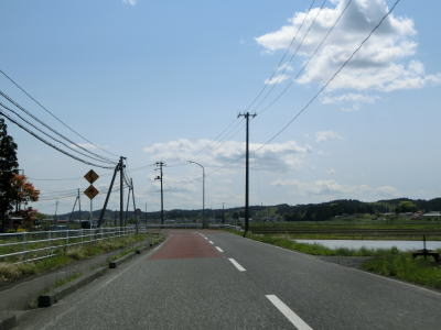 | 大栗交差点からはほぼ平坦でカーブも少ない2車線道路を走る。沿線も家屋よりも水田が多く見通しはかなり良い。さらに付け加えると交通量もかなり少なくハイペースで走る事ができる。 | ||