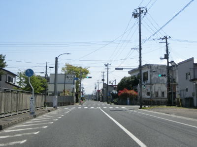 | 多少のアップダウンはあるものの走りやすい2車線道路を走っていると旧築館町に入る。栗原市の中心部に近付くと周辺の家屋が増えてくる。旧道らしき市道との交差点を左にカーブしながら通過する。 | ||