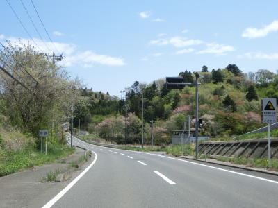| 新北上橋を渡った東詰で宮城r30・r238交差点を通過するが、R398は道なりに直進して右急カーブを曲がる。正面に山があるため直進できるように見えない。左折してr238を少し走った所に大川小学校跡がある。 r30・r238交差点からは釜谷川沿いを走るが、河川の規模に対して堤防が高いのは津波を想定しているためだろう。道路状況としてはカーブが多いものの交通量は少なく概ね走りやすいと言える。 |