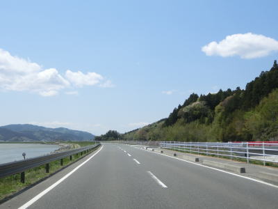 | 緩やかなアップダウンを繰り返しながら交通量の少ない2車線道路を淡々と走る。二桁国道との重複区間である事を忘れてしまいそうな交通量の少なさである。R45/E45三陸道は全線が供用されているが、この区間は内陸を通っておりR45と並走状態とは言えない。 | ||