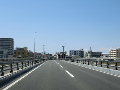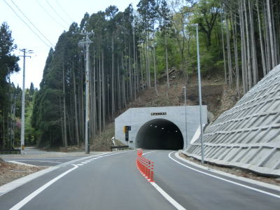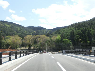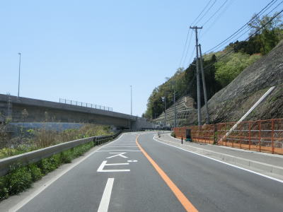 | 旧道との交差点を過ぎてすぐに新水浜橋を渡るが、その手前で過去の津波浸水区間が終わる。橋を渡り終えてさらに緩やかな勾配を上ると水分トンネルをくぐり、旧道との連絡道路との交差点を通過した後に分波トンネルをくぐる。 | ||
