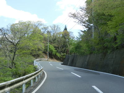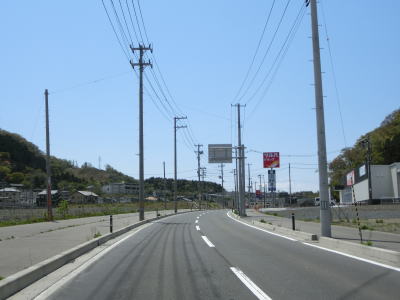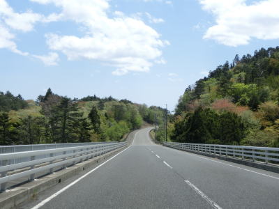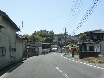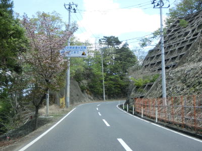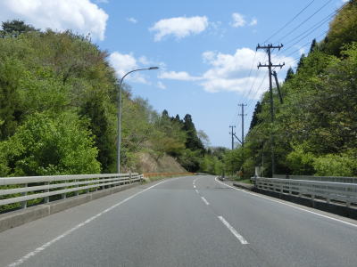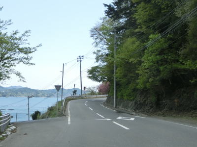 | バイパス区間が終わった後に過去の津波浸水区間が終わり、その後もさらに勾配を上って行く。沿岸部にしてはカーブが多く見通しは悪い。右カーブを曲がって御前湾から離れて内陸へと進む。 | ||