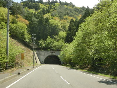 | 427.「石巻市総合運動公園6.7km 石ノ森萬画館3.3km 牧山トンネル1.0km」 | 428.右折すると牧山トンネル | 429.拡幅されていれば走りやすい |