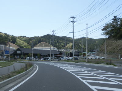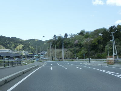 | 女川橋を渡ると女川町の中心部と言える場所に差し掛かり、緩やかな左カーブを曲がりながら道の駅「おながわ」の前を通過する。前回(2011年11月1日)の走行時は建物は流され大型ダンプが粉塵を巻き上げながら土砂等を運んでいたが、道の駅を中心とした観光スポットに変わり多くの観光客がいる。 道の駅を過ぎて少し走ると女川バイパスと現道との交差点に至る。直進がバイパスだが、約1.9km先で現道に接続している。道なりに進めばウオッちずで国道扱いされていない道路を経てさらに西で現道に接続している。今回は右折して現道を走る。 |