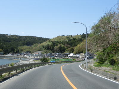 | 388.路側帯が狭く余裕はない | 389.採石場の前で左カーブ | 390.指ヶ浜漁港 |