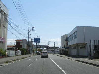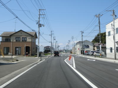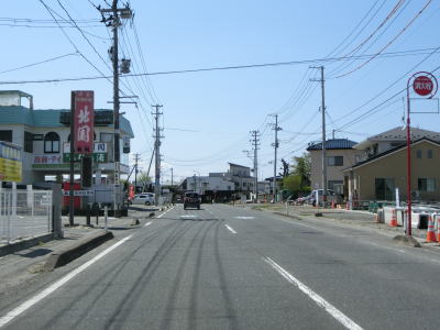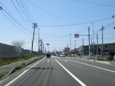 | 宮城r2・r193交差点からも狭い歩道の2車線道路が続いているが、拡幅の計画があるようで既に買収されて建物が解体された空地が確認できる。元は金華山軌道という線路が敷設されていた場所だが、JR石巻線が延伸されたため廃止になったのは1939年と80年以上前の事である。 金華山軌道跡を走っていると宮城r240交差点を通過する。r240への左折車線が長い事から左折車両が多い事が窺える。案内標識にはr240の行き先が消されているが、文化センターと市立病院と表記されていた。どちらも東日本大震災の津波で被災しており、別の場所に移転している。なお、r240自体は石巻市中心部の南をパスするバイパスとしての価値がある。 |