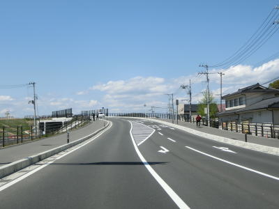 | 宮城r192交差点からは大原川左岸の堤防の上を走り、約300m先の宮城r238交差点を右折する。バイパスが供用されているせいか、それとも堤防上に道路が造られて日が浅いせいか、案内標識が設置されておらず右折車線すらもないため直進してしまう可能性が非常に高い。 | ||