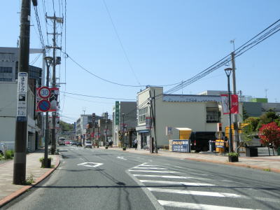 | 内海橋で北上川を渡る。以前は少し南の中州を挟んで西内海橋と東内海橋に別れていたが、内海橋が開通して以降の東内海橋は撤去されている。内海橋を渡り終えた直後に宮城r33の上を通過するが、こちらも内海橋が開通する以前は十字形状の交差点を右折してすぐを左折というシケイン状になっていた。 石巻市の中心部を走っていると宮城r6石巻駅前交差点を通過する。r6は一桁の主要地方道であるものの停車場線であり石巻駅までの140m弱しかない。石巻駅前交差点のすぐ先に石巻市役所があり、デパートのように見えるがそれもそのはず、さくら野百貨店の建物が転用されている。 |