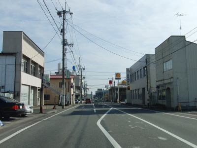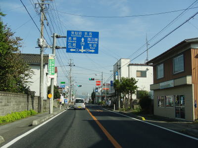 | バイパス化され水田の中を直線的に進む道路で非常に走りやすい。もっとも旧道と合流して以降もバイパスと同じような道路状況なので走りやすい状況が続くと言える。登米市の市街地に入ると沿線の建物の数と交通量は増えるが、市街地にありがちな狭苦しく感じるような状況にはならない。登米市の中心部で役所の南東からの入口に当たる交差点を左折する。 | ||