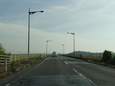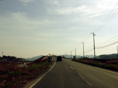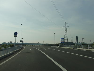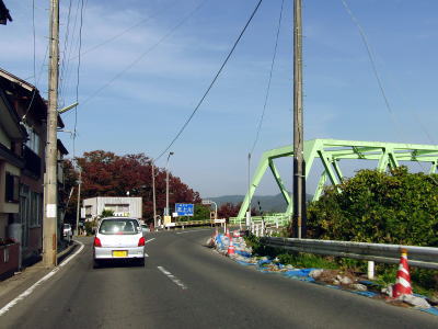 | 10.2輪(125cc以下)と軽車両は右折不可 | 11.橋の前後の段差は震災の影響だろう | 12.長閑な風景の中を走り抜ける |