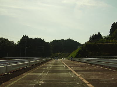 | 唐桑集落からは海との距離は短いもののやや高い位置を走るため海面は見えず津波の被害も受けていない。バイパス化されたR398は被災していないが、集落は海に面した低地にあるため津波の被害を受けているのが見える。女川町との境まで山手の高い位置をバイパスで走る。 | ||