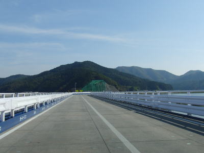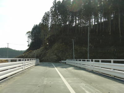 | 戸倉交差点を左折して直後の折立橋も仮設橋となっている。水尻橋同様に折立橋も津波により落橋している。折立橋仮橋を渡ってすぐに左に急カーブして本来の国道のルートに戻り、戸倉集落を通り抜ける。しかしその戸倉集落も大部分が津波によって流失しており、残っているのは鉄筋コンクリート造りの建物か少し高台にある家屋くらいである。その残った建物も揺れか津波による何らかのダメージを受けているものが多い。道路自体は大きな陥没もなく瓦礫等も片付けられているため普通に走行できる。 | ||