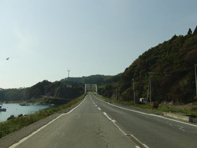 | 御前湾の最奥の御前浜集落も津波の被害を受けている。御前浜辺りから先は国道そのものに亀裂や小崩落等の被害が多く見られるようになる。車両の通行に支障のないように応急処置されているものもあるが完全に修復されるのはまだ先の話だろう。 | ||