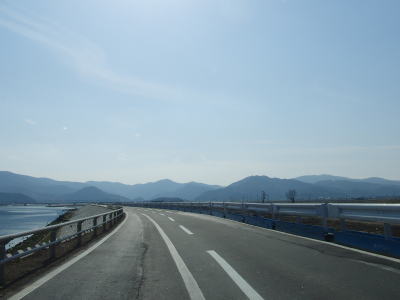 | 82.僅かな標高の差が明暗を分けた模様 | 83.道路の損壊からは復旧している | 84.雄勝湾沿いを走る |