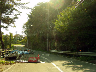 | 海岸線から近くても標高の高い位置にある家屋は津波の被害を免れている。この時点で既にいくつかの津波の被害に遭った集落を通過しているが、低地であればかなり内陸まで被災しているが、高台は海からの距離が2,30mでも津波には襲われなかったようだ。ただ、津波の被害がなくとも地震の被害はあるようで瓦が崩れたり壁に亀裂が入ったりしている建物が多い。 道路に対する被害は瓦礫が除かれた後なので通常の通行には支障がない。地震か津波か不明だが被害を受けた箇所は既に補修されていたが、歩道や崖側の法面の崩落は手付かずとなっている箇所がいくつか存在している。そんな状態を走っていると戸倉交差点から約9.2kmで石巻市に入る。 |