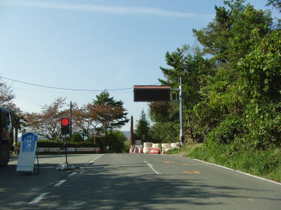 | 法面が崩れている箇所は片側交互通行となっている。距離が長い箇所には交互通行用の信号機が設置されているが、短い箇所には設置されていない。中には見通しの悪いカーブの近くが片側交互通行となっている場所もあるので通行の際には細心の注意を要する。 | ||