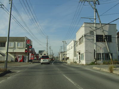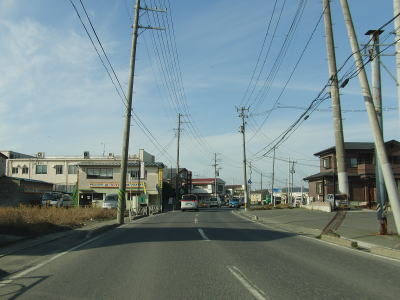 | 石巻市の市街地に近付くと国道沿線は崩れかけた家屋や傾いた電柱など津波の被害よりも地震の揺れそのものの被害が目立つようになり、商業施設の中には営業していないものもある。そんな状態だが石巻市の市街地に近付くせいもあって交通量は次第に増えてくる。 | ||
