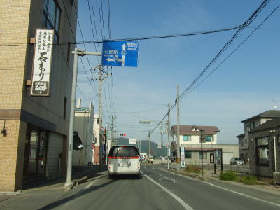 | 十日町交差点からはR45との重複区間となってすぐに先ほど渡った八幡川を渡る。その先には公立志津川病院とサンポートというショッピングセンターが残っているが、津波により本来の機能は失われている。右手の病院を見ると3階より下の階の窓ガラスが全てなくなっている事からその高さまで津波が押し寄せたのだろう。周辺には仮設ではあるが営業している店舗もある。営業しているガソリンスタンドがあると分かっていればここで給油したのだが、あいにく登米市内で給油したばかりであった。 志津川病院から程なくして南三陸警察署前で町道とのT字路に突き当たる。ここにも案内標識はなく青い看板のみとなっているが、R398(実質R45)は左折である。なお、警察署も被災しており他の場所に移転している。 |