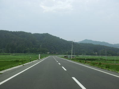 | 97.見通しの良い快走路 | 98.右の浪江方面は広谷地林道 | 99.正面を横切っている道路は旧道か |