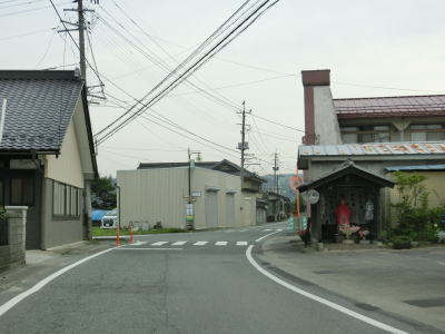 | 古道川の左岸の集落を繋ぎながら2車線道路を快走していると楢梨子交差点を右折して葛尾方面に進む。この交差点でR288との重複区間が終わる。新町交差点からの距離は約5.1kmである。 | ||