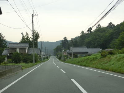 | 村の中心部を離れると拡幅済みの2車線道路に変わる。大橋の北詰のいわなの郷と案内されている村道との交差点からは上り勾配となる。なお、いわなの郷の先には電波時計の電波を発射しているおおたかどや山標準電波送信所がある。緩やかな上り勾配とカーブの2車線道路を快走していると名もなき峠を越えて田村市に入る。 | ||