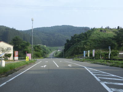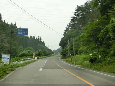 | 左ヘアピンカーブ部には短いながらも登坂車線が設置されている。登坂車線が終わって対面2車線道路を上っていると登館峠を越えて浪江町に入る。浪江町に入ってからは緩やかな勾配を下って行く。 | ||