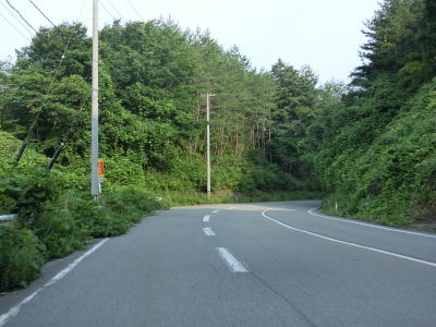 | 下ノ内集落を過ぎると下り勾配となり、村道と広谷地林道との交差点を過ぎると再び上り勾配となり右ヘアピンカーブを曲がる。カーブの奥にガードレールが確認できるが、おそらく旧道と思われる。 | ||