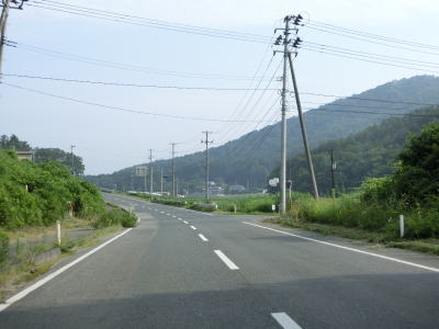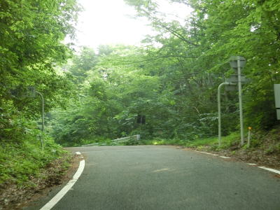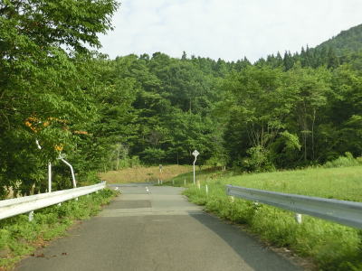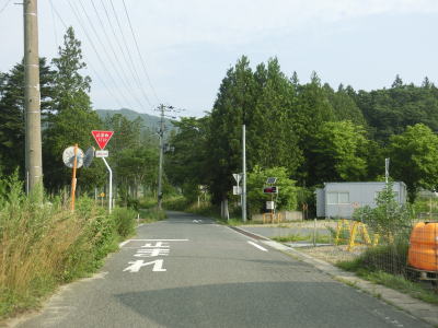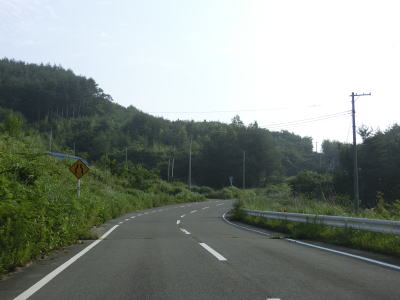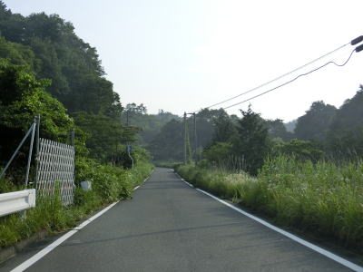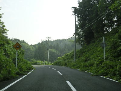 | 1.0〜1.5車線幅の狭路をひたすら走る。勾配はほとんどないもののカーブが多く見通しは悪い。帰宅困難区域であるため住民がおらず、元々少なかった交通量がさらに少なくなっているのだろうが、対向車が現れないとは言い切れない。 | ||