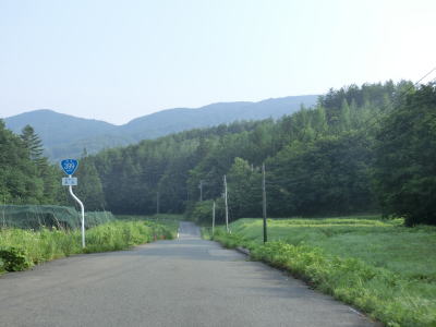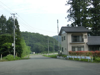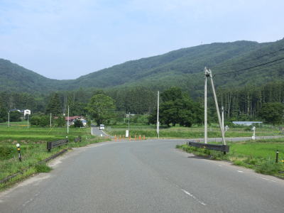 | 2つの町道との交差点を過ぎてからは1.5車線幅のまま連続するヘアピンカーブを曲がって標高を上げる。ヘアピンカーブ区間が終わると名もなき峠を越えて飯舘村に入る。飯舘村に入った直後こそカーブは緩やかだが、すぐにヘアピンカーブ程ではないものの急カーブがいくつか連続している。白御影石で造られた飯舘村の碑のある左カーブ付近から集落に差し掛かる。正確に言えば集落跡だろうか。飯舘村内も帰宅困難区域があり、東日本大震災以前には建っていた家屋は解体されて更地になっている。沿線の田畑から雑草が伸びておりただでさえ狭い道幅がさらに狭くなっている。 | ||