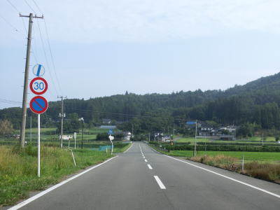 | 144.町集落内の制限速度は30km/h | 145.集落を出ると快走路に戻る | 146.センターラインが消えている区間あり |