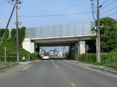 | R4伊達交差点から約200m走ると福島r353交差点を通過する。R4の西を並走しているr353はR4の旧道に当たるが、一部センターラインのない区間が存在している。r353交差点以西もほとんどカーブのない2車線道路を走っていると緩やかな上り勾配となり、東北新幹線の高架橋をくぐった直後に長岡跨線橋でJR東北本線の上を通過する。 | ||