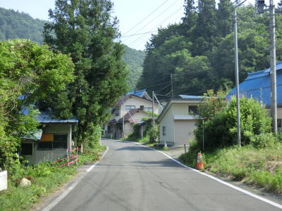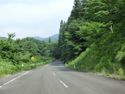 | 旧道(?)と合流してからは1.5車線幅狭路に戻ってしまう。摺上川に沿っており僅かな上り勾配となっている。集落が途切れると1.8車線幅と若干広くなるが、別の集落に入ると1.5車線幅と狭くなる。 | ||