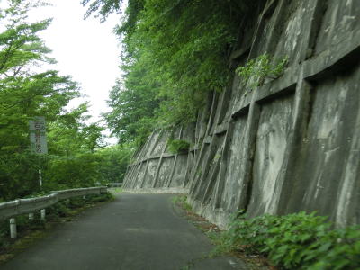 | 256.宮城県七ヶ宿町に入る | 257.宮城県に入ってからも断崖を走る | 258.両側の路肩に苔が生えている |