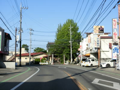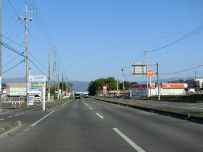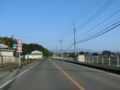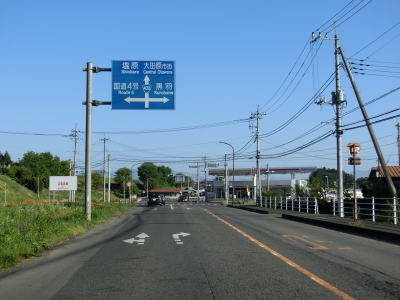 | R4西那須野バイパスとの交差点から200mも走らないうちに左側車線が減少して対面2車線道路になる。4車線化の計画はあるようで左の西側には拡幅用地が確認できた。中央分離帯と仮設のガードレールが設置された左カーブに市道が交差しているが、この市道はR400の旧道である。 | ||