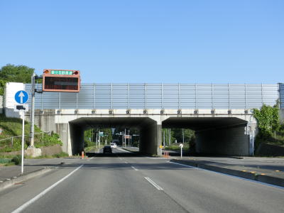 | E4東北道の那須1ボックスカルバートをくぐった直後に西那須野塩原ICを通過するが、ここで右側車線が西那須野塩原ICへの右折専用車線になる。対面2車線道路になってすぐに跨道橋をくぐるが、これは道路の両側に跨る農業食品技術研究機構専用の橋である。 | ||