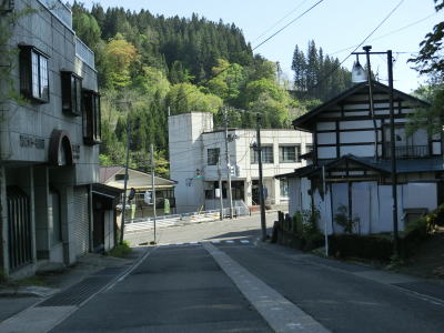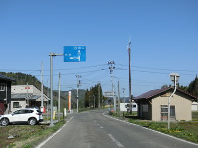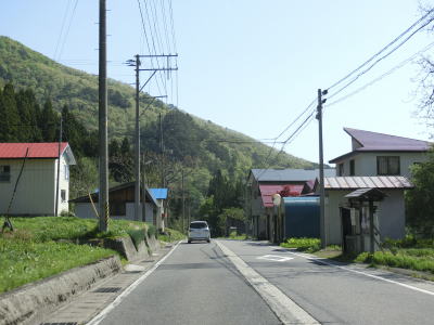 | センターラインが復活して2車線道路の戻るも小栗山スノーシェッドをでると2.0車線幅道路になり、上町集落に入ると1.5〜1.8車線幅とさらに狭くなる。金山町役場と金山中学校の出入口の手前から下り勾配が始まり、下り切った所でR252会津川口駅前交差点に突き当たる。案内標識にR400のおにぎりが表記されていないが、右折してR252との重複区間を会津若松方面に進む。 | ||