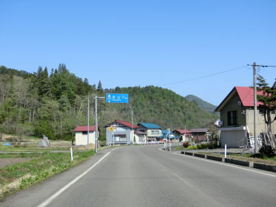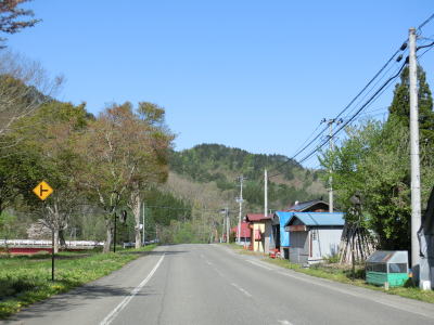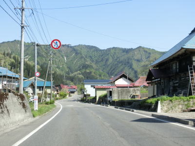 | 上村集落の手前にはセンターラインのない2.0車線幅区間が残っているものの交通量が少ない事もあってさほど走りにくさは感じない。スノーシェッドをくぐって上村集落に入ってからも2.0車線幅道路が続く。集落の北端で福島r237交差点を通過する。 | ||