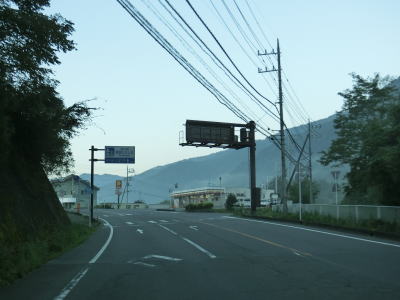 | 一般の家屋と旅館・民宿が混在している中を走っていると片品高原の出入口の交差点を通過する。基本的には下り勾配だが、少ないながらも上り勾配の区間が存在している。早朝のため交通量は少なかったが、行楽シーズンの昼間はかなり多いはずである。 | ||