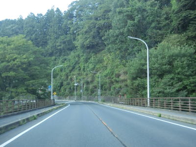 | 戸倉大橋からは集落のない場所を通っているが、改良された2車線道路が続く。古仲集落の東を走っていると右カーブを案がって尾瀬古仲橋を渡って旧道らしき村道との交差点を通過する。戸倉集落だけでなく古仲集落や土出集落にも旅館・民宿は多い。 | ||