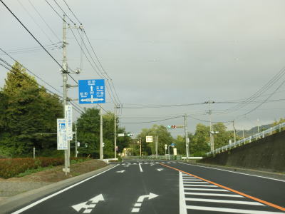 | 老神温泉入口交差点からは上り勾配となるが、横断歩道橋の手前で下りに戻り、片品川から離れて行く。その後は緩やかなアップダウンを繰り返す2車線道路を走り群馬r267大原南交差点を通過する。左折のr267には大間々と赤城山の他にE17関越道の昭和ICが案内されており、支柱には「東京方面 普通車う回路」とも表示されている。おそらく沼田方面(E17関越道の沼田IC)よりも渋滞しにくいルートと思われるが、普通車に限定している事から狭路区間が存在していると思われる。 | ||