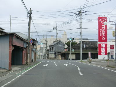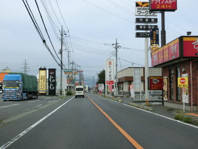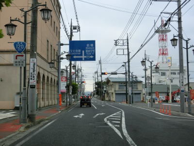 | 沿線の建物が店舗兼住居の商店街状態の中を走っていると群馬r266材木町交差点を左折し、100m強南の天狗プラザ交差点を右折する。短い距離で右左折しなければならないが案内標識が設置されているのでルートミスする可能性は低いだろう。R401のおにぎりは表記されていないが、R120をたどれば済む。 | ||